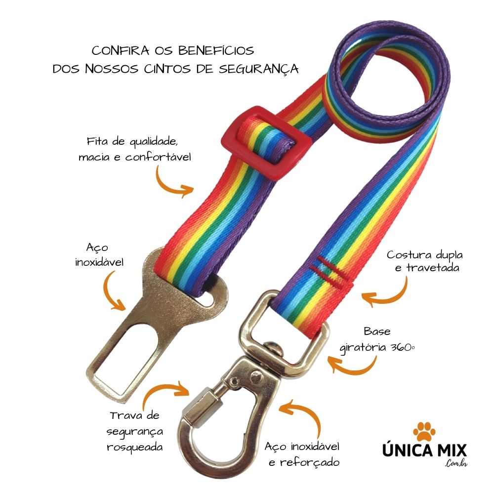 Cinto de segurança para cachorro e gato com trava de segurança rosqueada e com mola.