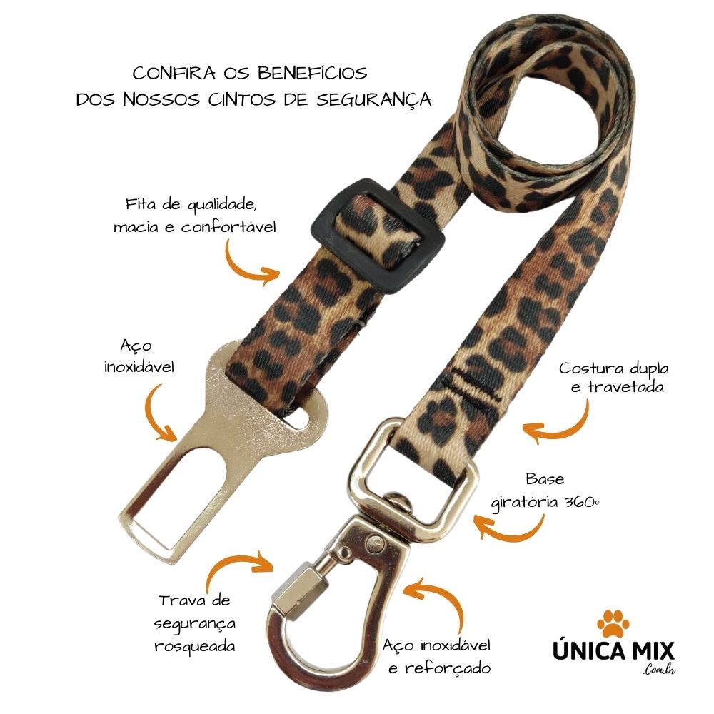 Cinto de segurança para cachorro e gato com trava de segurança rosqueada e com mola.