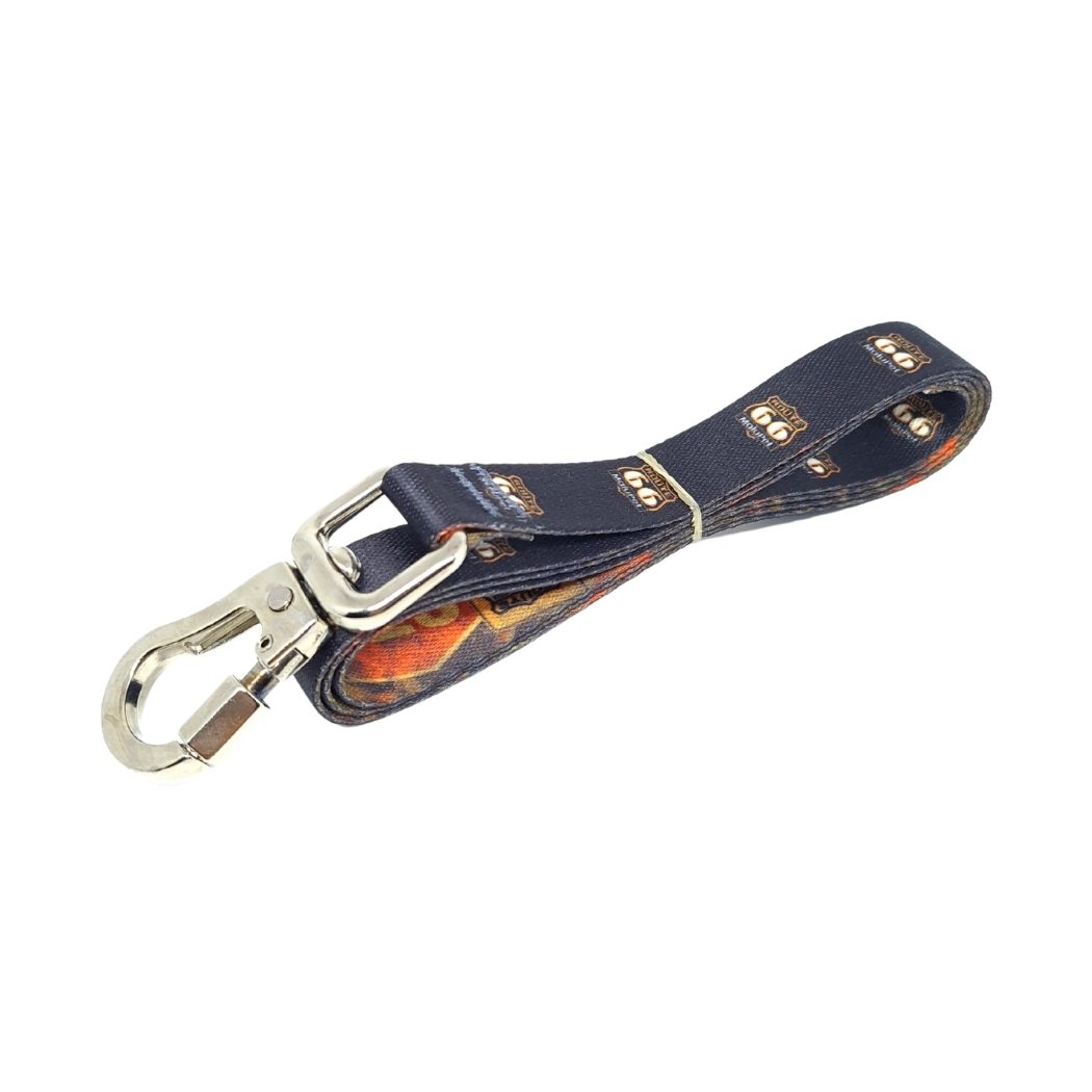 Mosquetão e Argolas: De metal com banho de níquel. Possui trava de segurança rosqueada, evitando a abertura acidental do mosquetão.