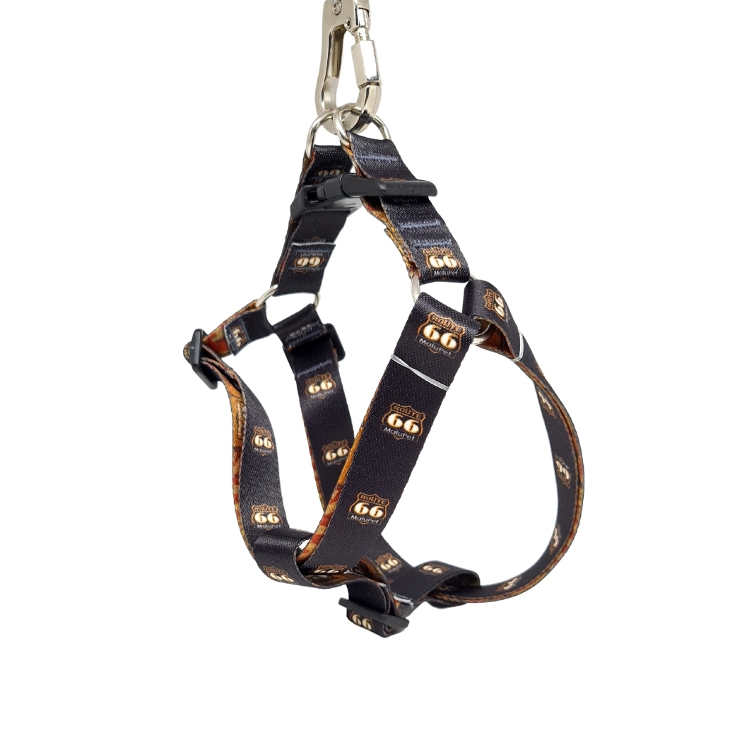 Coleira Peitoral Americano Pet e Guia com Trava de Segurança Preta Route 66