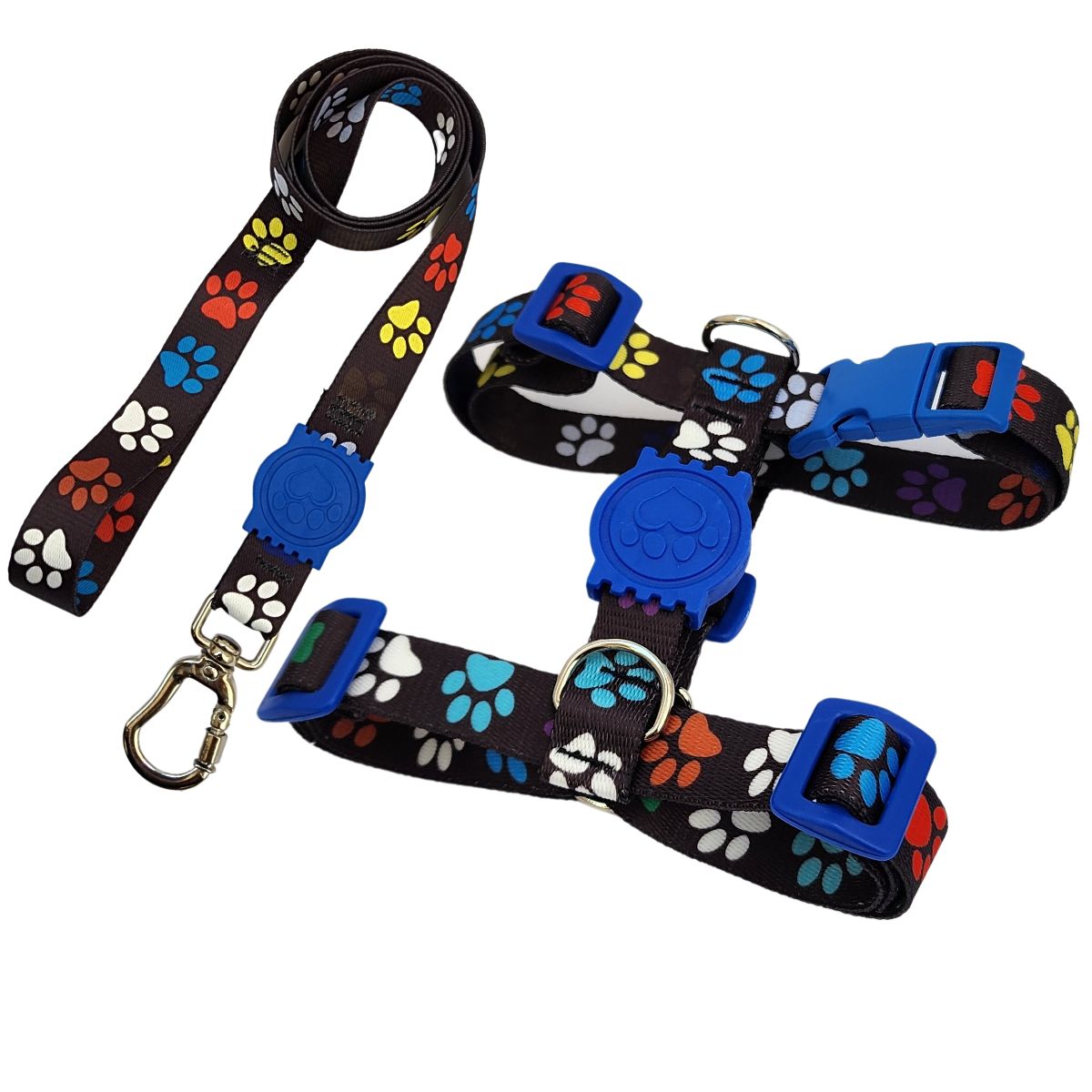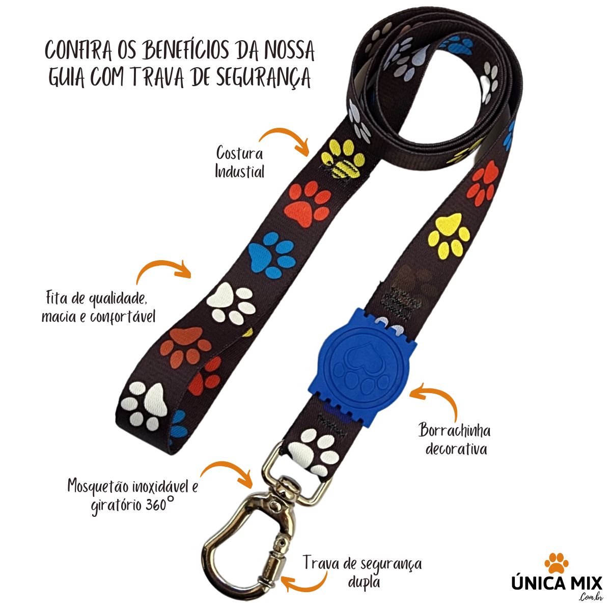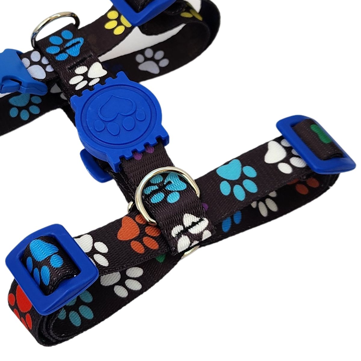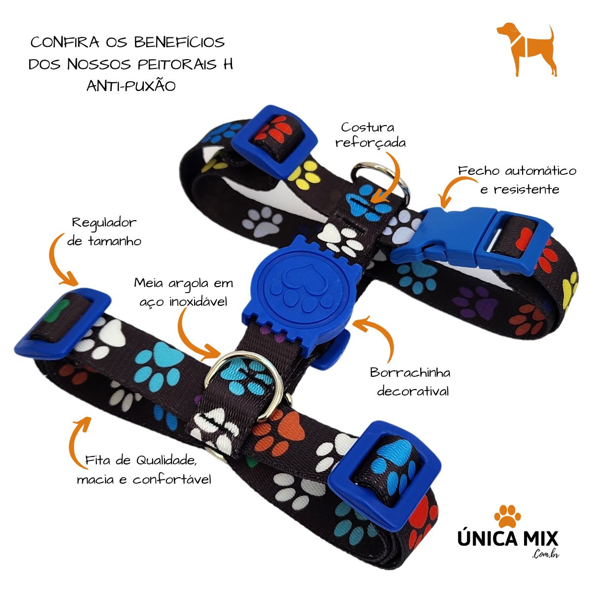 Coleira peitoral H antipuxão para cachorro com guia e trava de segurança rosqueada e com mola.