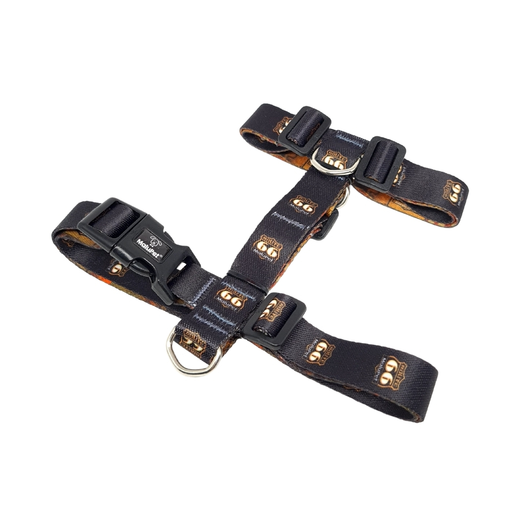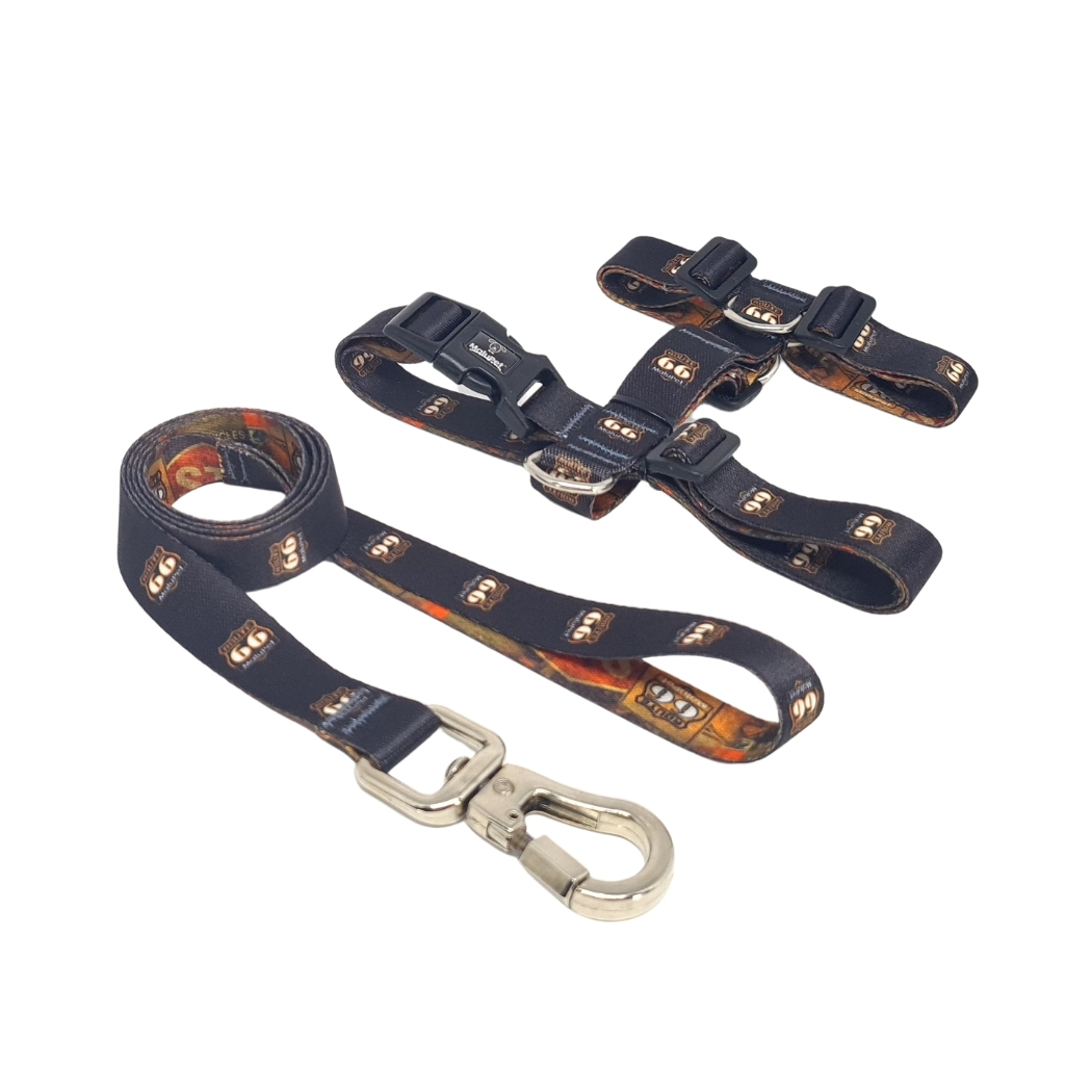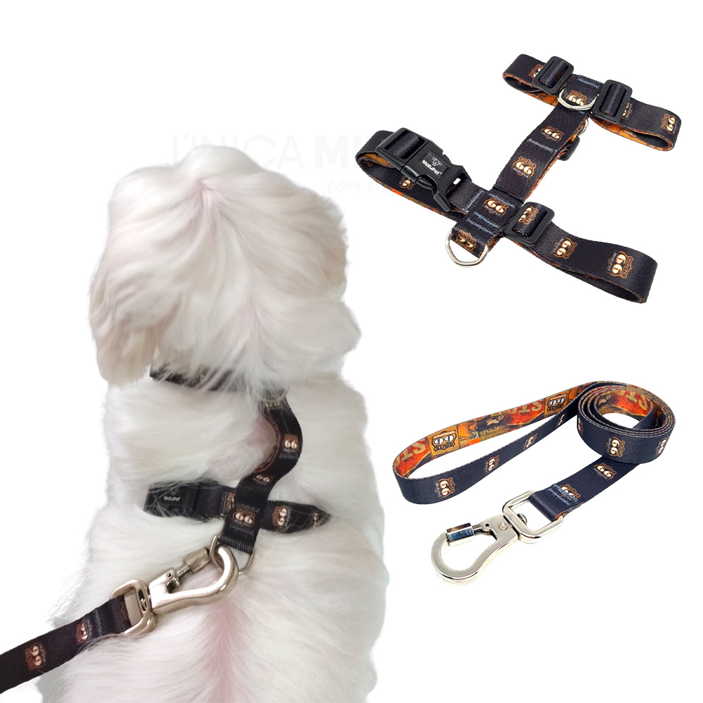 Coleira Peitoral Pet H Anti-Puxão e Guia com Trava de Segurança Preta Route 66