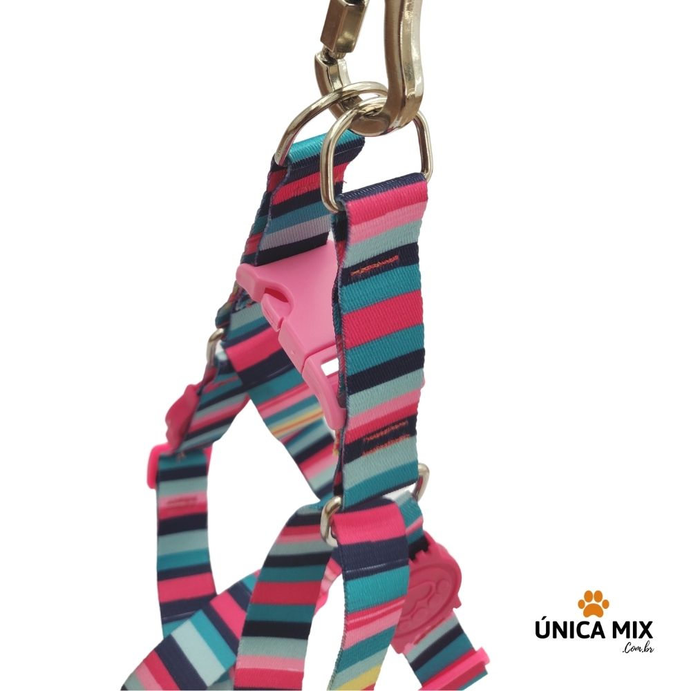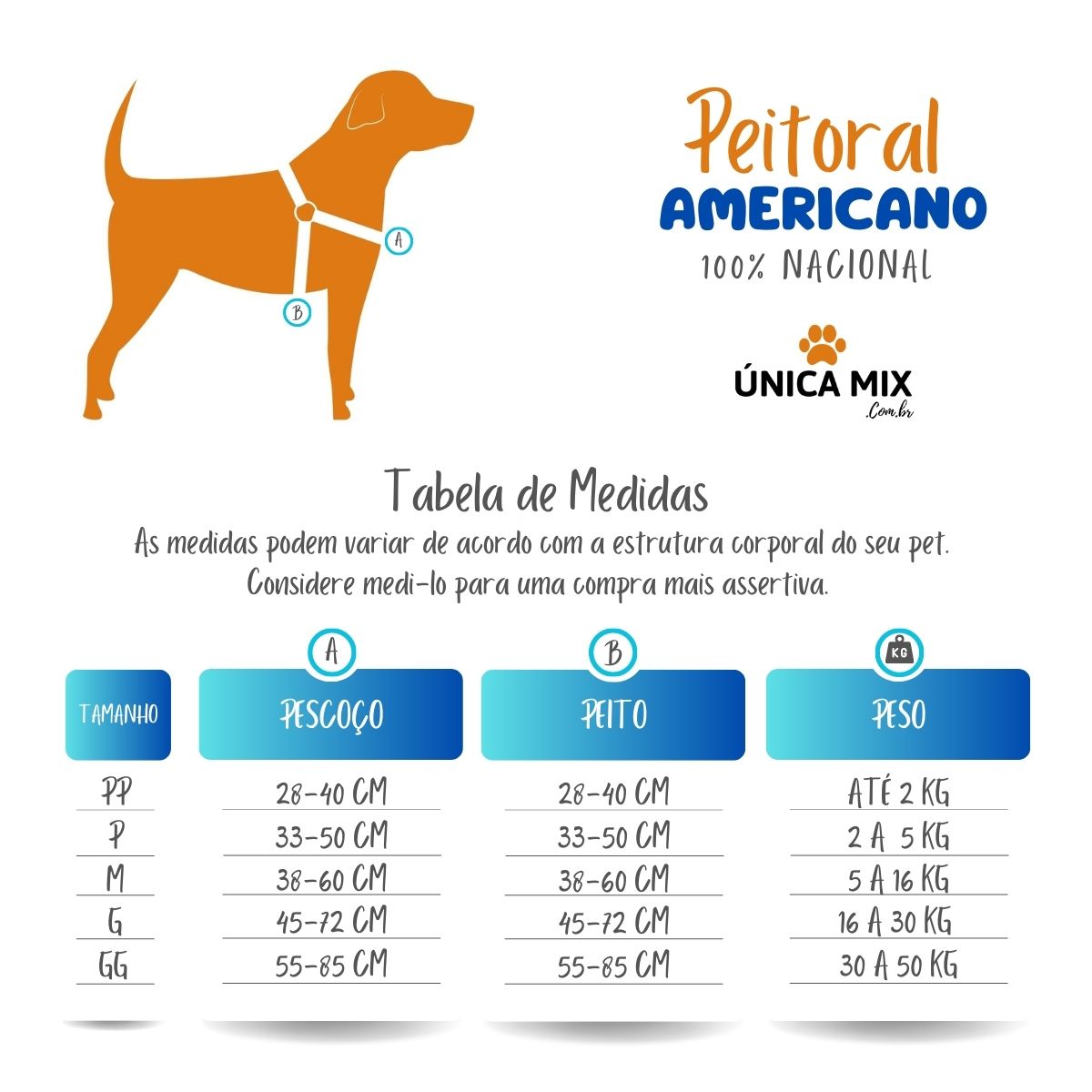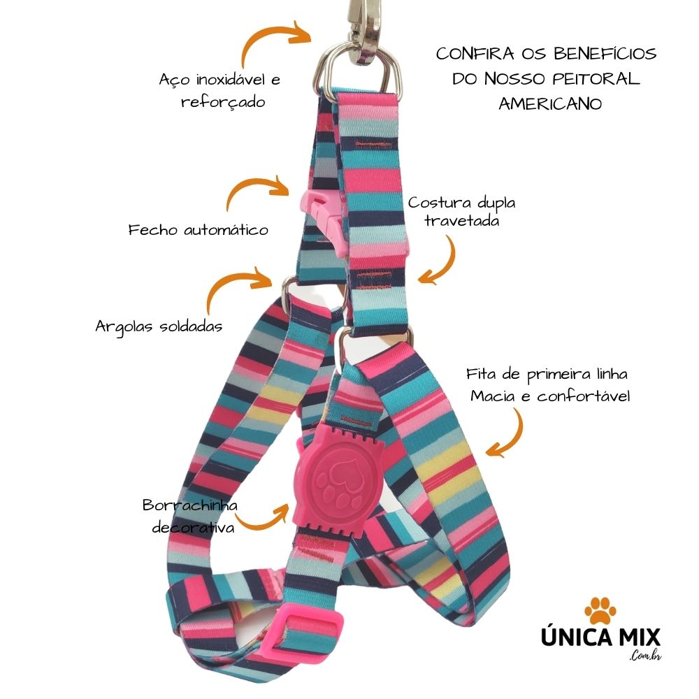 Coleira peitoral americano para cachorro com guia e trava de segurança rosqueada e com mola.