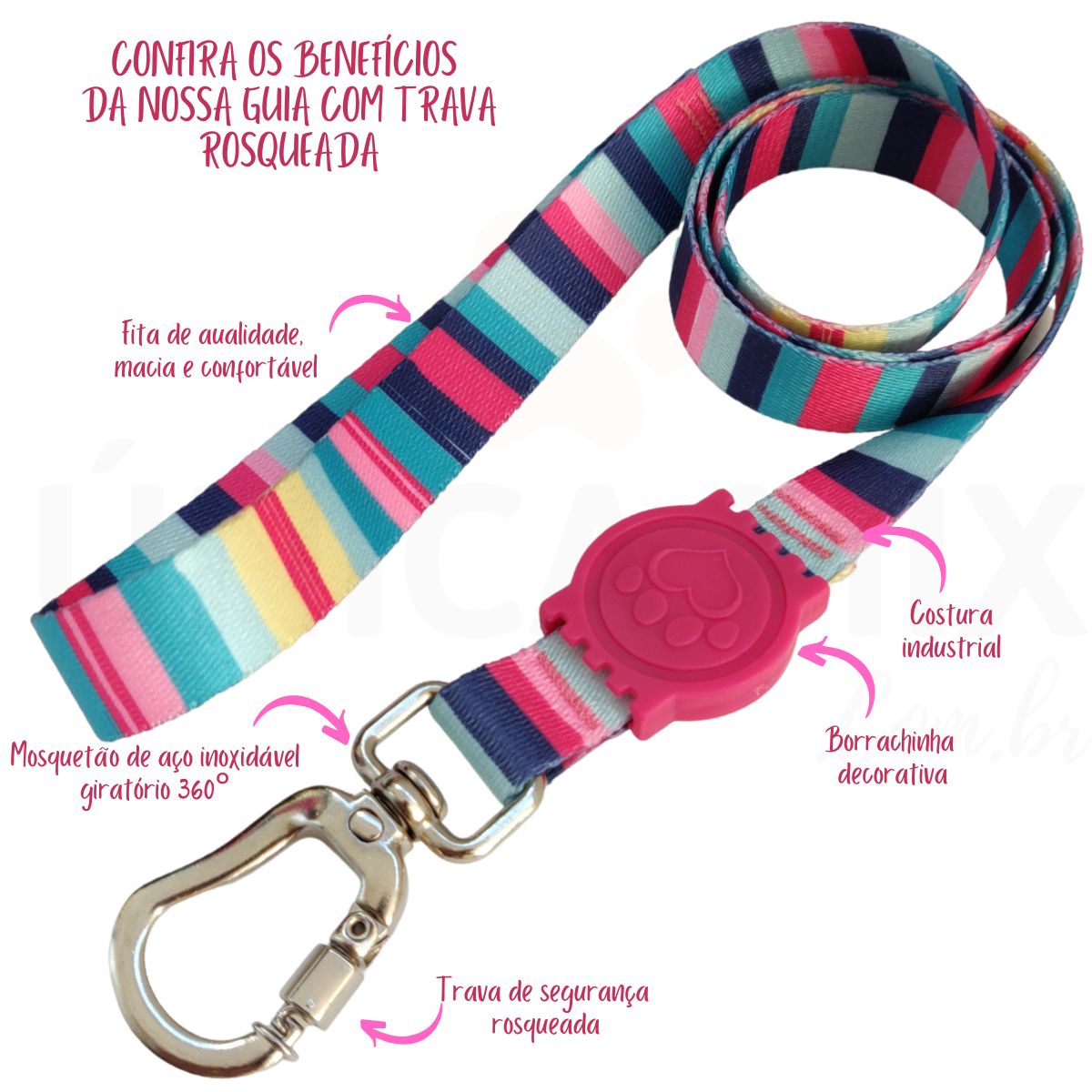 » Borrachinha decorativa atóxica no peitoral e guia;