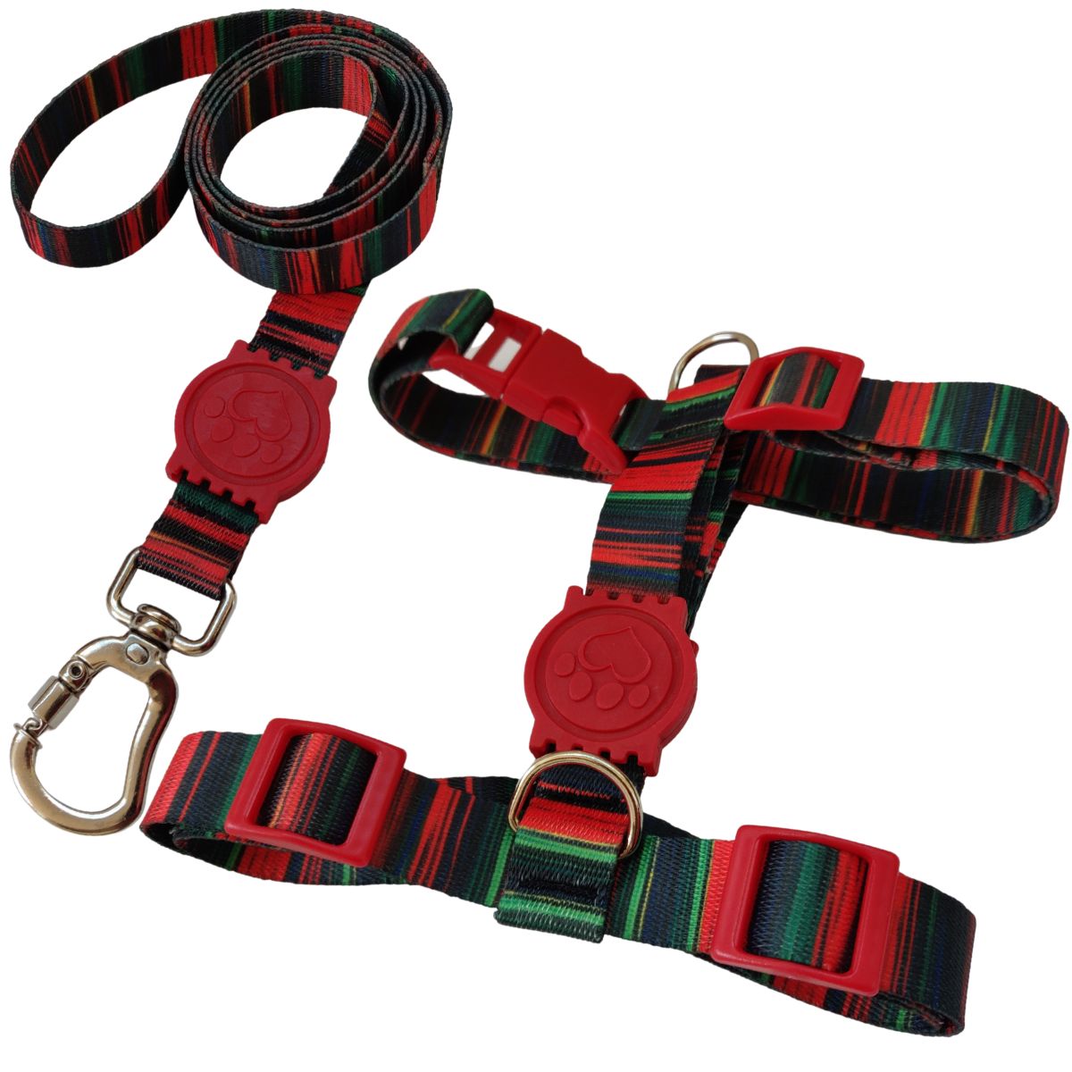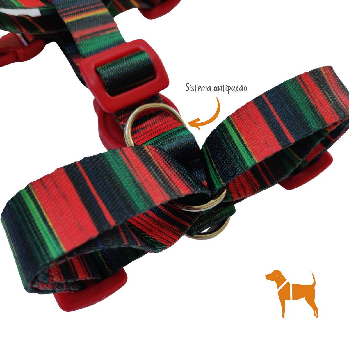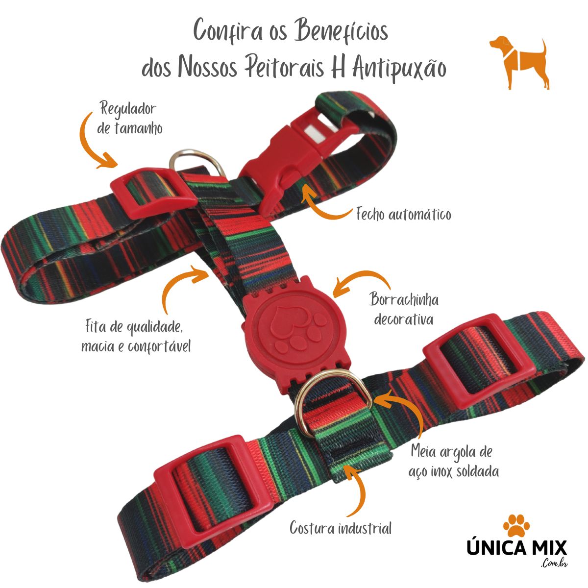 Coleira peitoral H antipuxão para cachorro com guia e trava de segurança rosqueada e com mola.